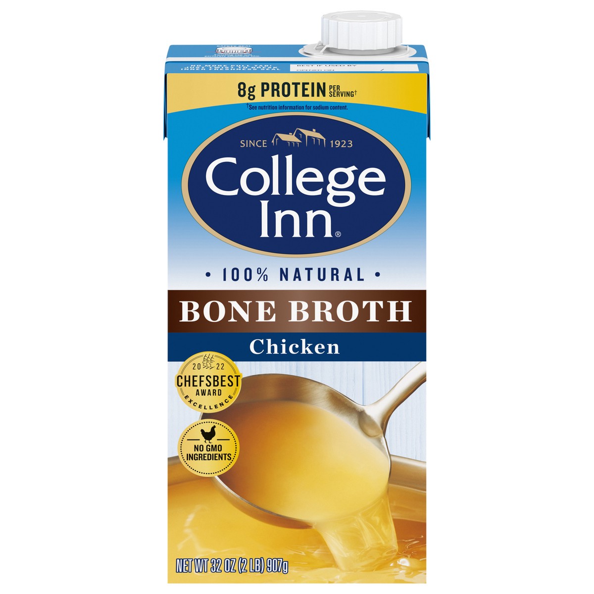 COLLEGE INN 100% Natural Chicken Bone Broth is made with the highest quality ingredients. This soup base is Non-GMO* and features no artificial flavors, preservatives or added MSG** for a chicken brot…