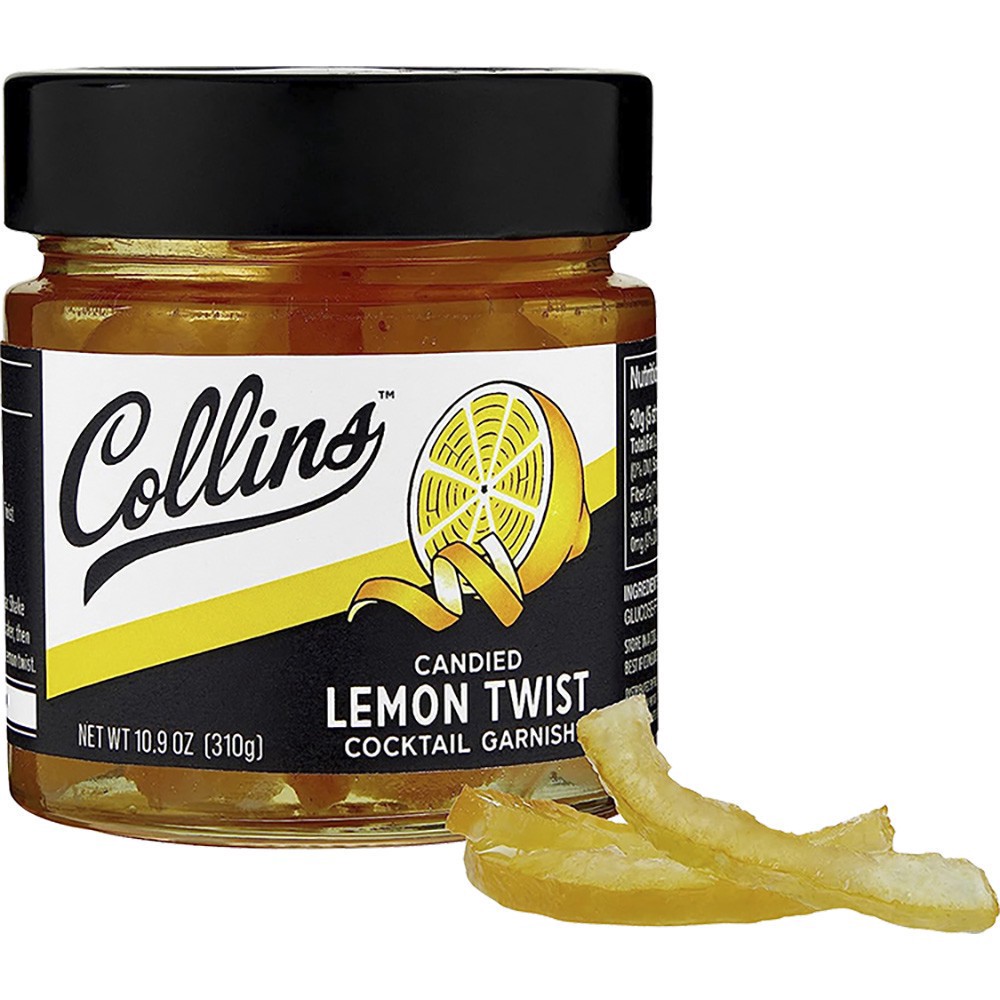 United States - Collins Lemon Twist in Syrup is a delicious, versatile garnish to keep on hand. Made in Italy with premium ingredients, these candied lemon peels instantly elevate your favorite cockta…