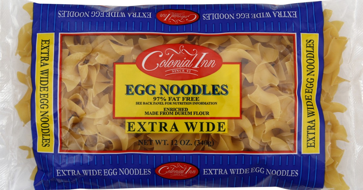 Durum Flour (Wheat), Egg Yolks or Eggs, Niacin, Ferrous Sulfate (Iron), Thiamin Mononitrate (Vitamin B1), Riboflavin (Vitamin B2), and Folic Acid.