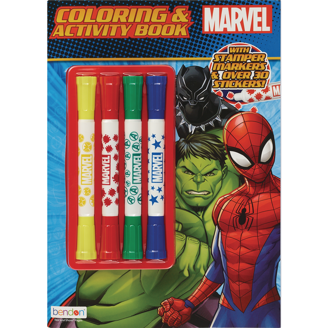Color, sticker, and stamp with Bendon's officially licensed Marvel Coloring and Activity Book with Stamper Markers! This book is filled with coloring pages and fun stamper activities and games for hou…