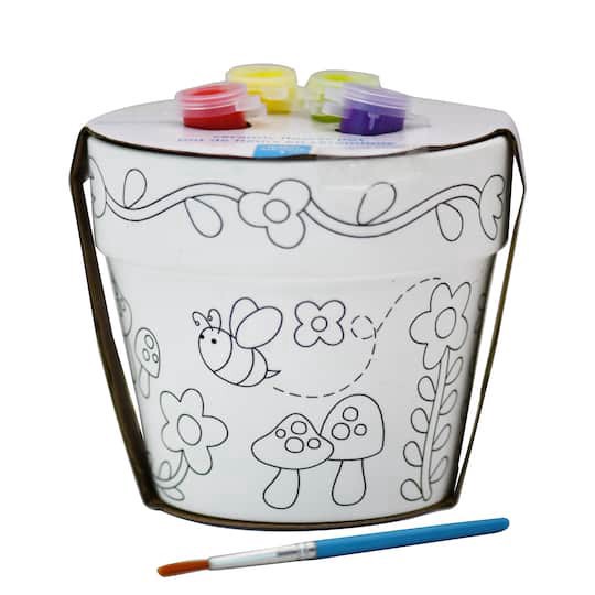 Color Your Own Round Ceramic Flower Pot Kit By Creatology