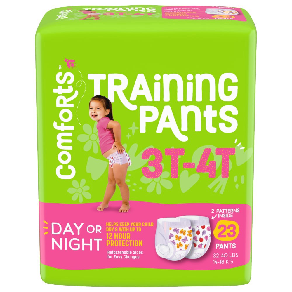 Comforts™ Day or Night Training Pants Girls 3T-4T (32-40 lbs) are hypoallergenic and made to keep your child's sensitive skin dry with up to 12-hour protection. The stretchy and refastenable sides mak…