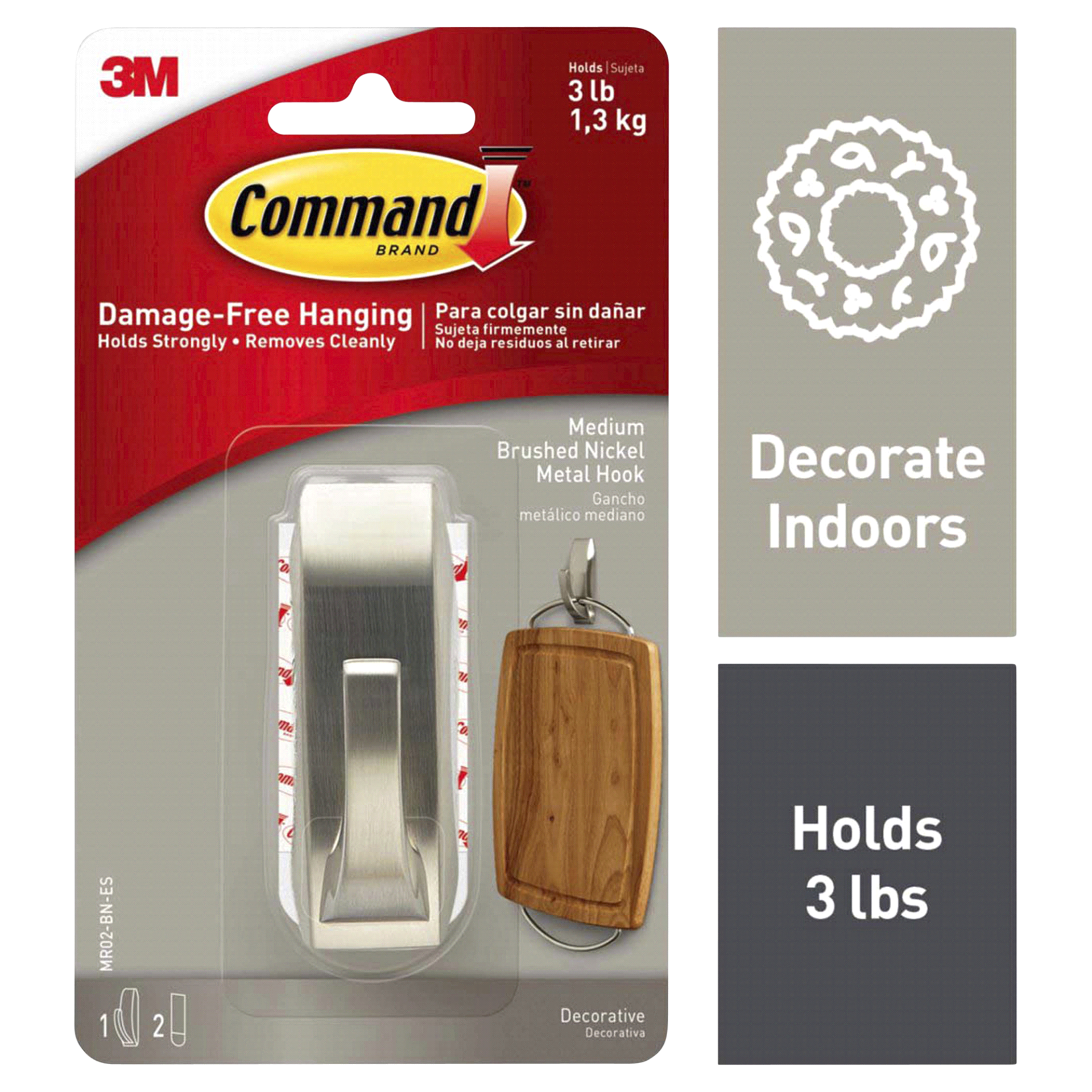 Command Medium Modern Reflections Hook, Brushed Nickel, 2 Strips/Pack
