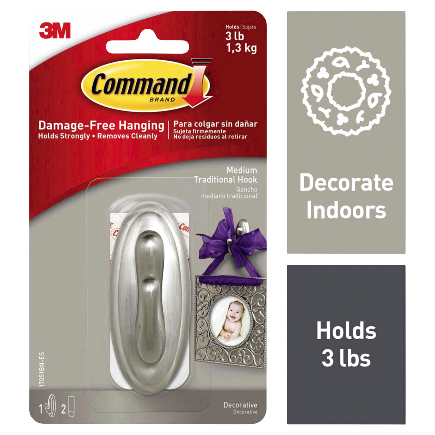 Holds 3 lb (1.3 kg). Damage-free hanging holds strongly. Removes cleanly. Limited Warranty and Limitation of Liability (for product sold in USA): This product will be free from manufacturing defects. …
