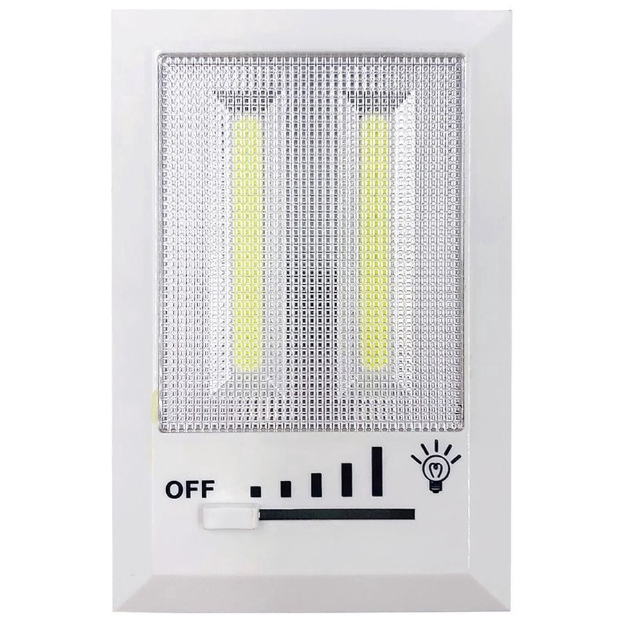 Dimmable light for use anywhere convenient for dark closets or sheds Magnets and sticky tape included Includes three 3 AAA batteries. 190 lumens Made in China