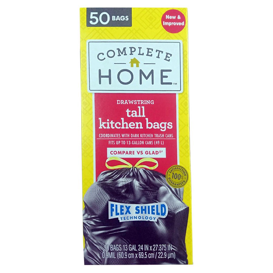 Complete Home Drawstring Tall Kitchen Bags Coordinates with Dark Kitchen Trash Cans Fits up to 13 Gallons 49L Made in THAILAND