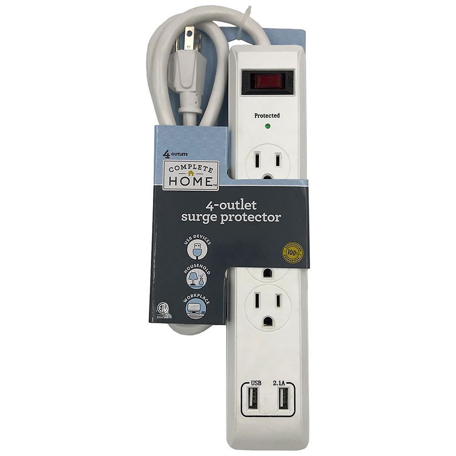 Grounded plug for added protection 4 AC outlets from one plug 2 USB charging ports for ease of charging phones or other mobile devices Great for home office