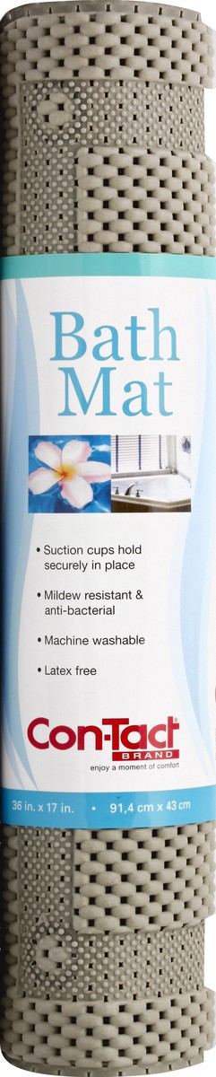 36 in x 17 in. Suction cups hold securely in place. Mildew resistant & anti-bacterial. Machine washable. Latex free. Enjoy a moment of comfort. Made in China.