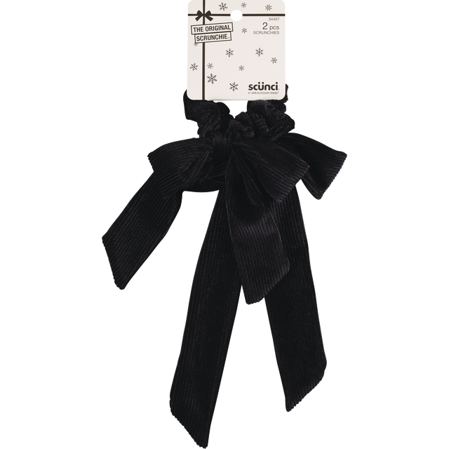 slide 1 of 1, 2-Pk M&M Bow Scrunchies Blk, 2 ct