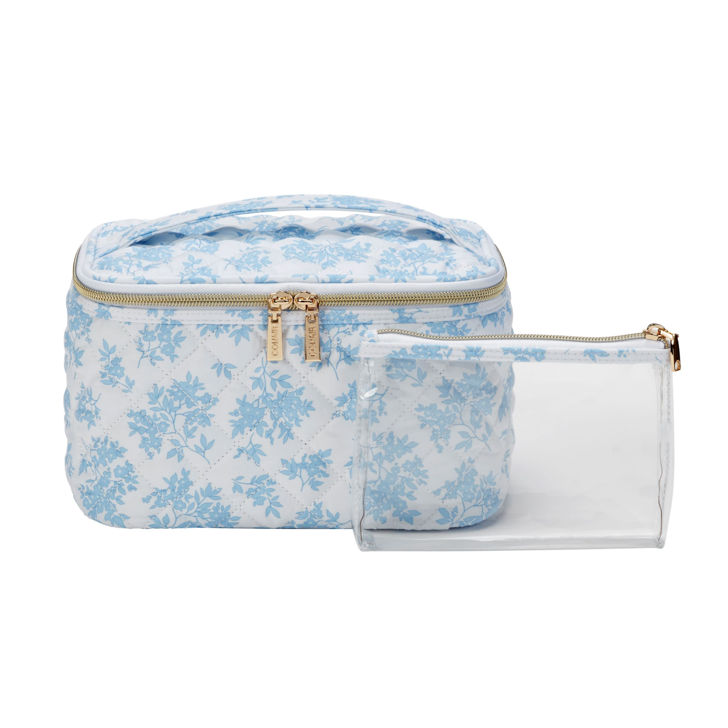 This double zip train case offers lots of storage in a compact size. The top compartment features a 6-slot makeup brush organizer with protective flap to keep the bristles clean and a zip pocket for s…