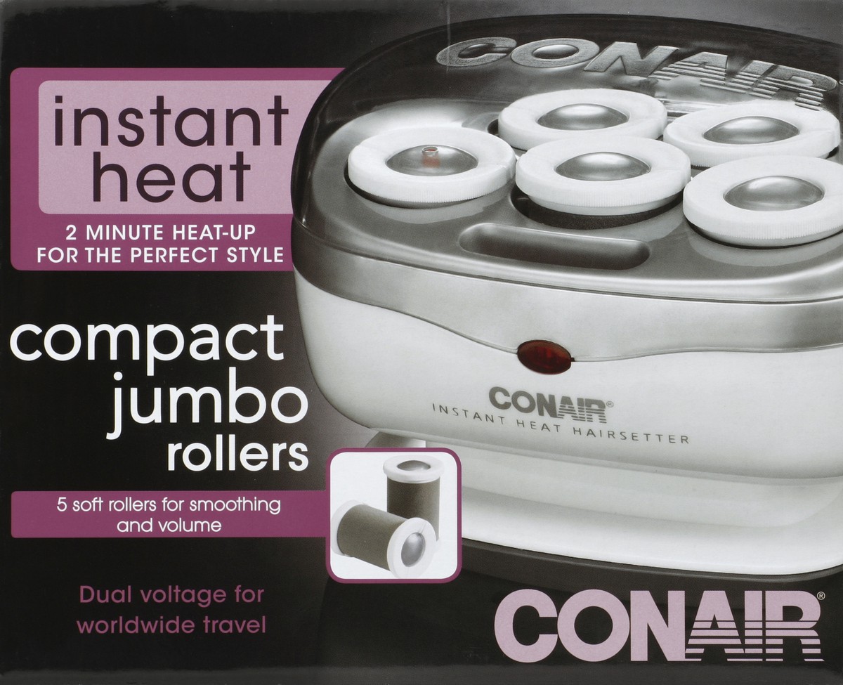 2 minute heat-up for the perfect style. Compact jumbo rollers. Compact and personal. Great fro travelling and storage. 5 soft velvety jumbo rollers. 1-1/2 inch diameter for smoothing and volume. 5 sup…