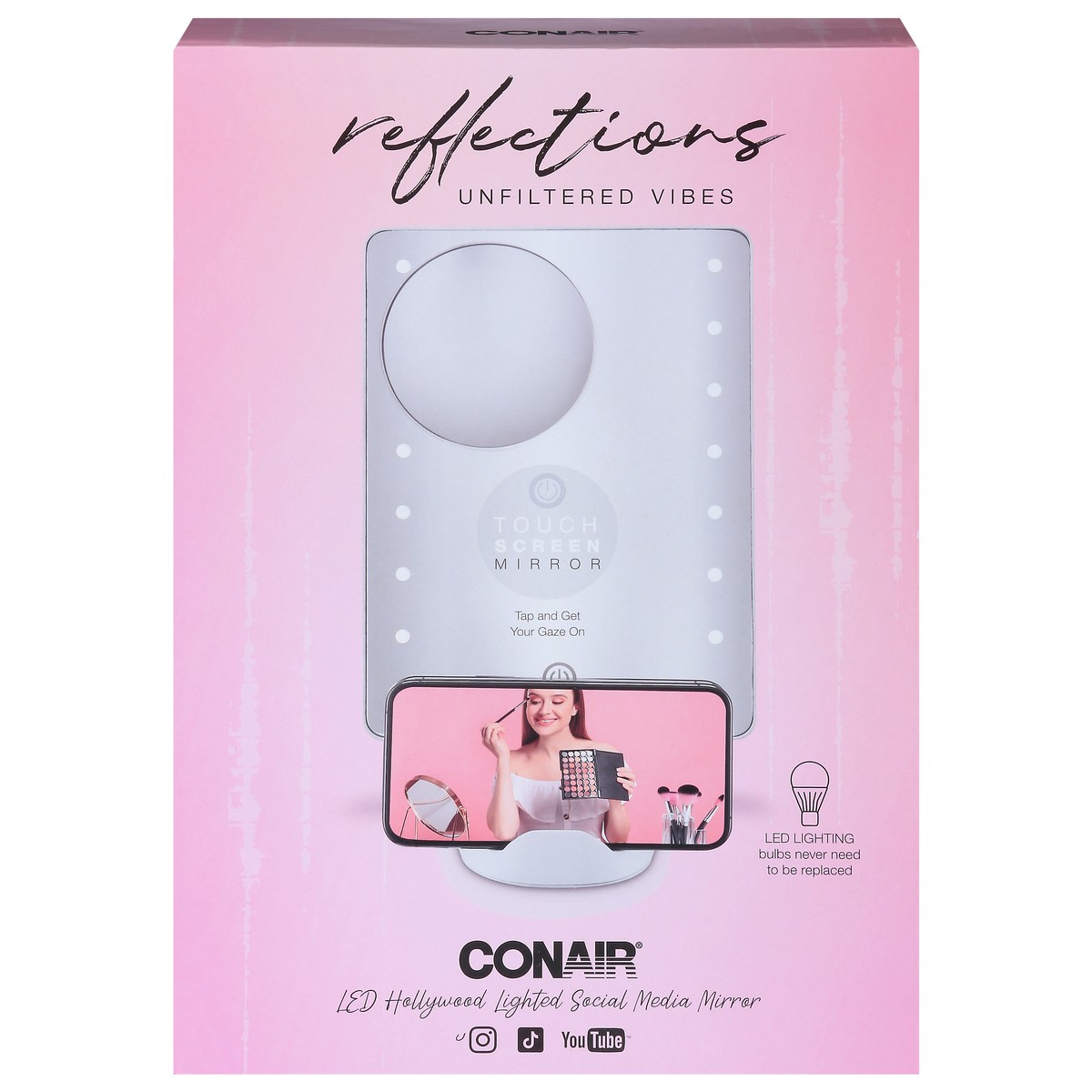Perfect for quick-and-easy social media posting, the LED Hollywood Lighted Social Media Mirror from the Conair®Reflections Unfiltered Vibes collection is the multipurpose must-have that helps you look…