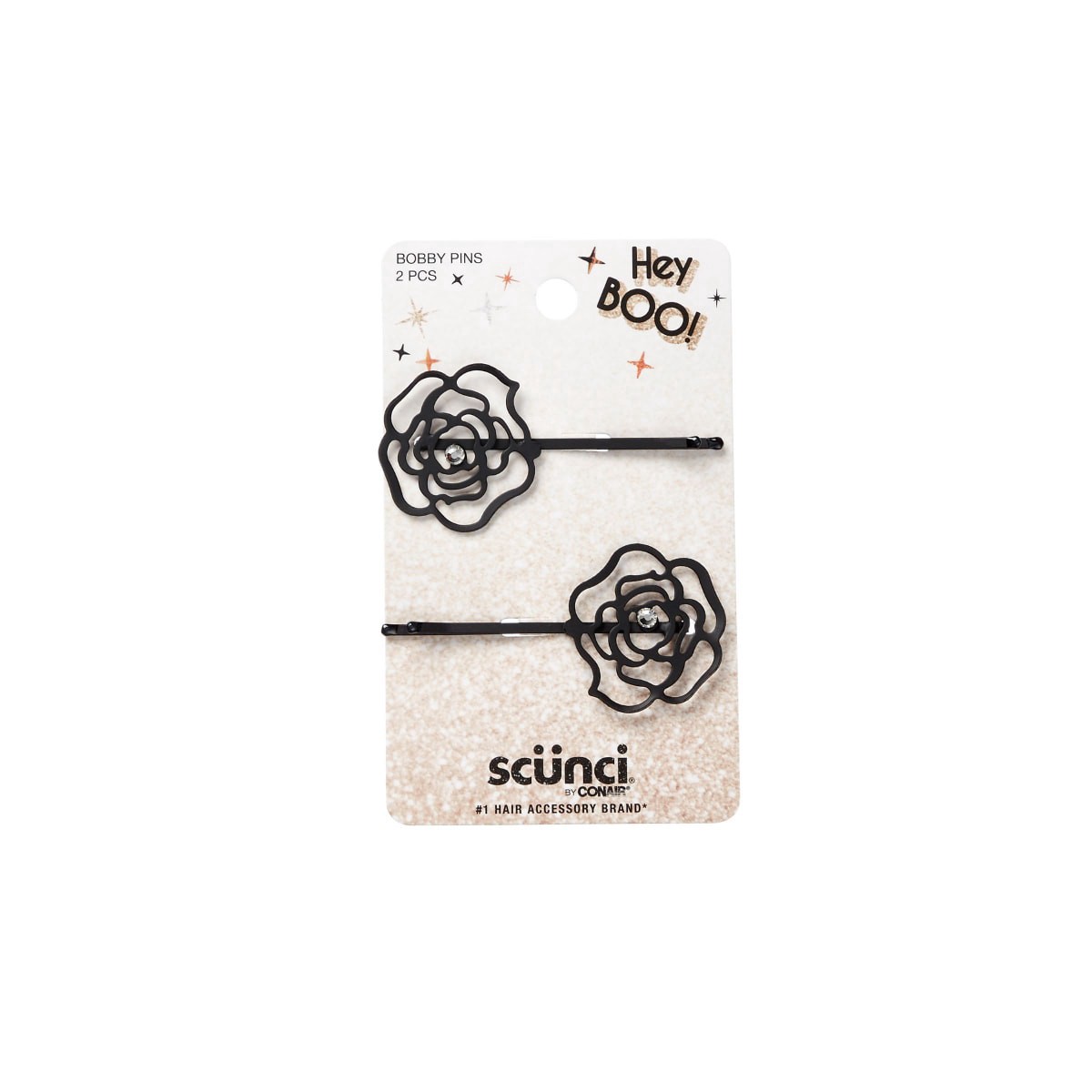 2PK DECORATIVE BOBBY PINS COLOR: BLACK ROSETTE CUT OUT 2PK