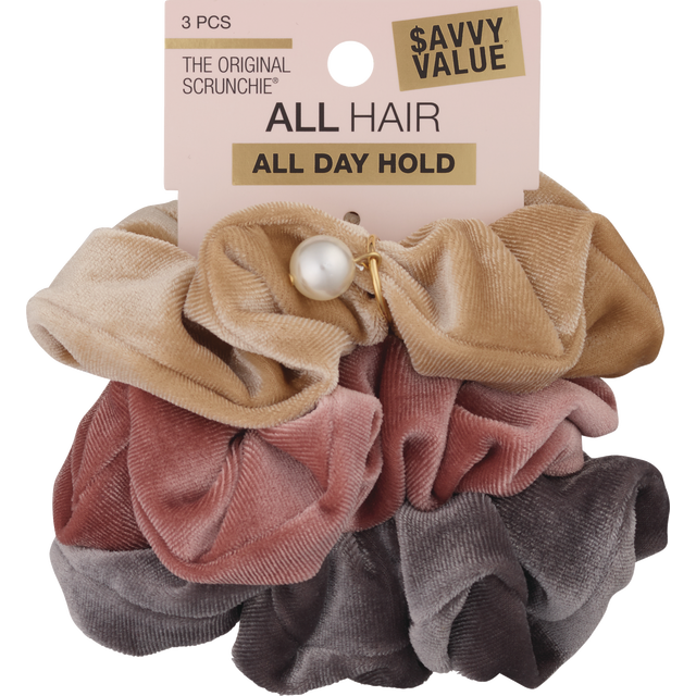 Scunci All Day Comfort Hold Velvet Pearl Scrunchies