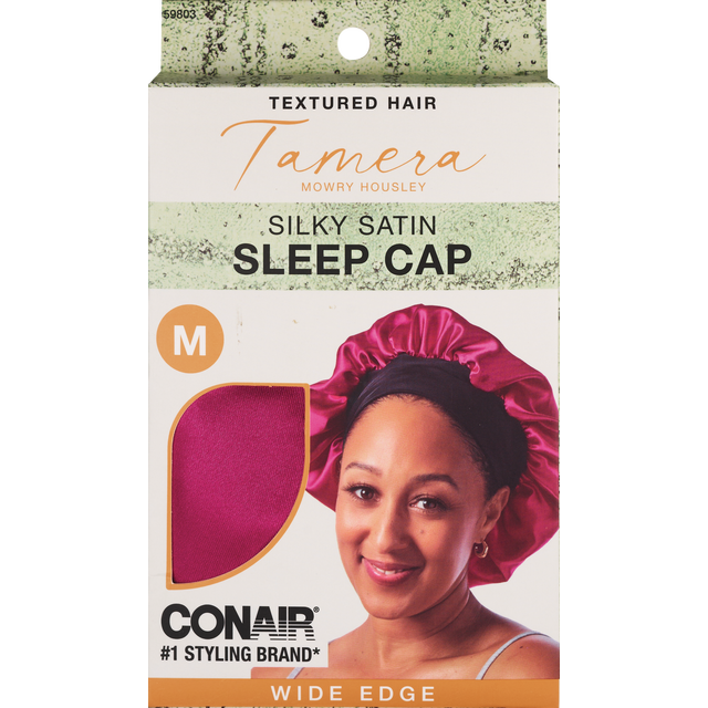 Sleep soundly with your hair wrapped in this stylish satin bonnet from the Tamera Mowry Housley x Conair collection. A wide edge band keeps your edges smooth and secure all night with a comfortable f…