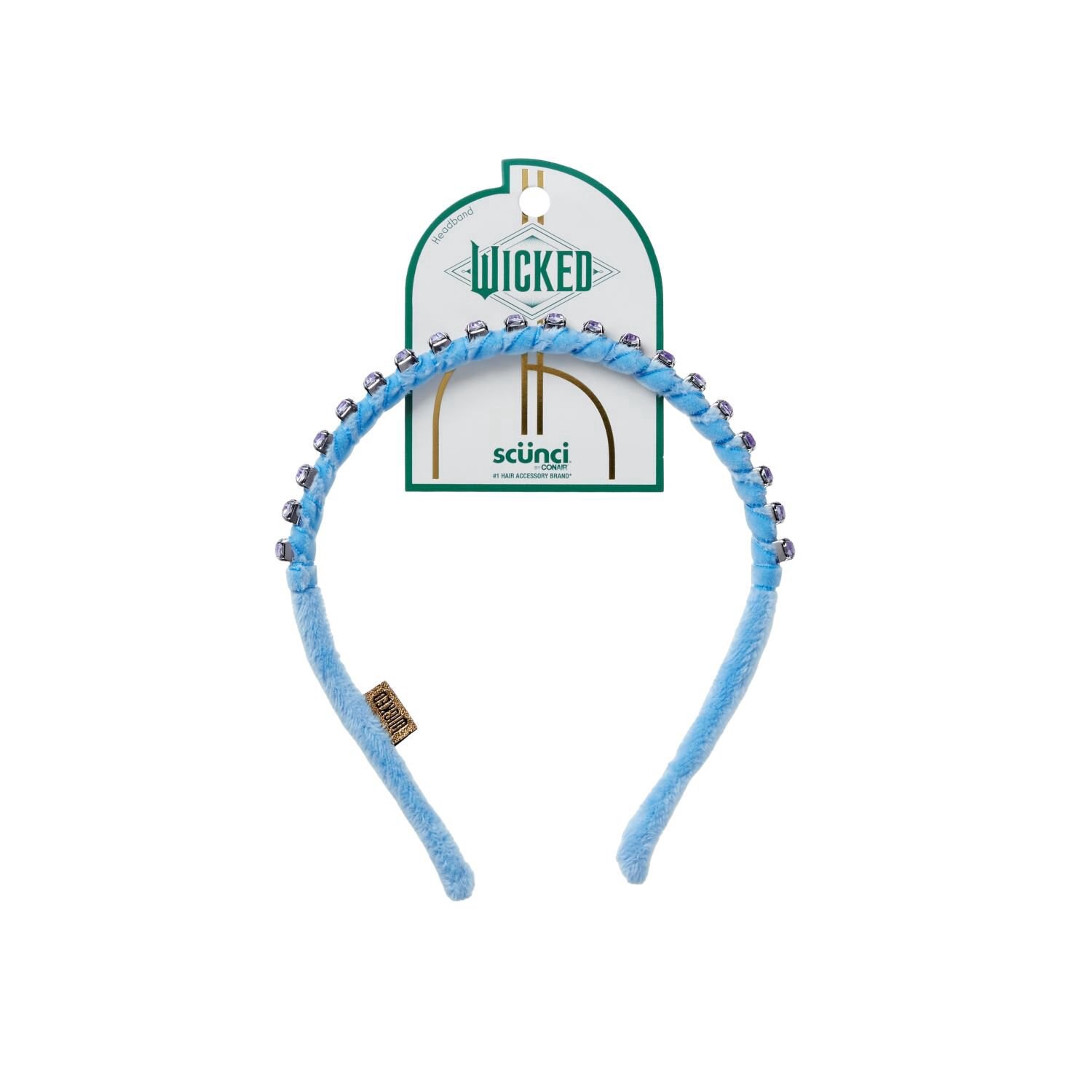 Step into the spotlight with sparkle that speaks volumes. This Glinda-inspired faux gem-topped scünci® headband is made for moments that deserve a little extra magic. Adorned with radiant periwinkle g…