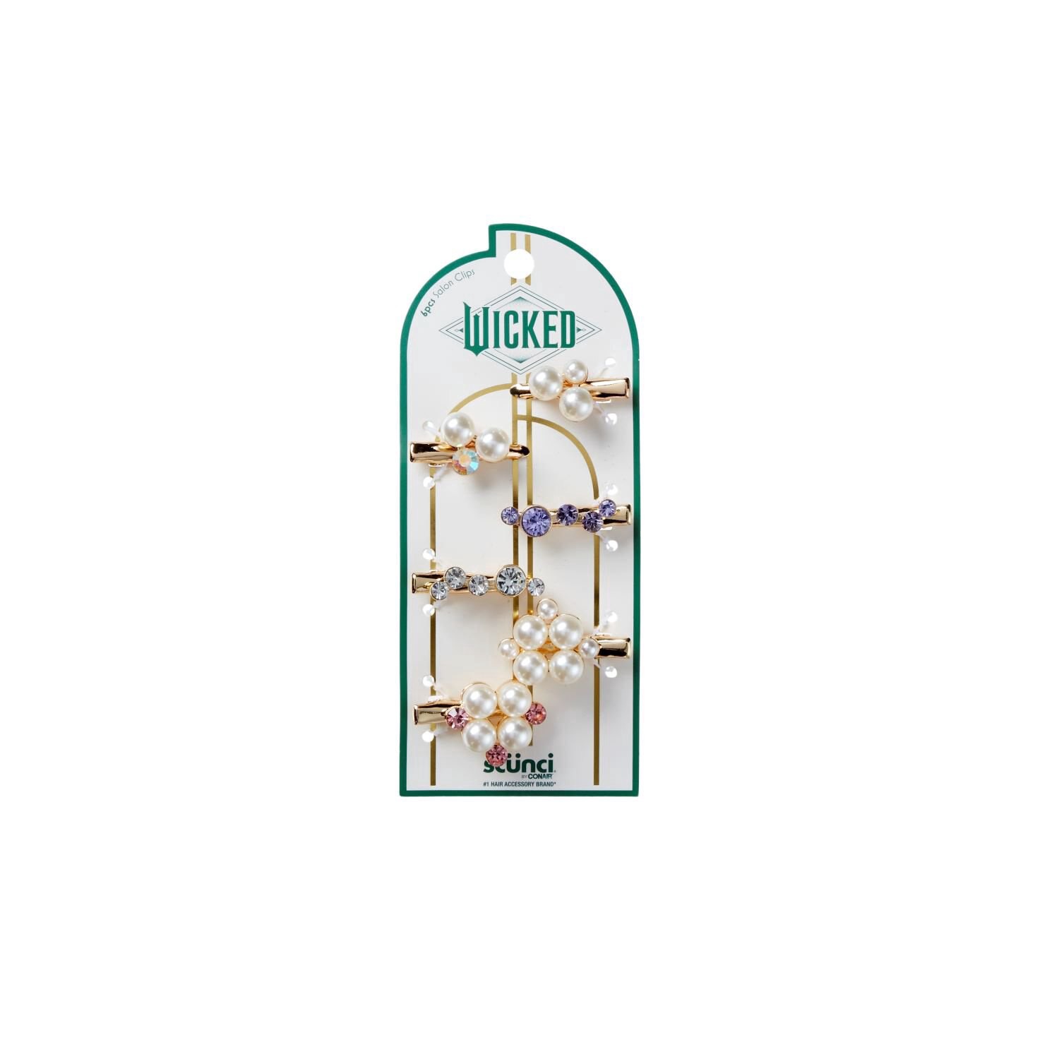 Step into the spotlight with our Glinda-inspired 6-pack of scünci® faux pearl salon clips—a Wicked: For Good collection designed to dazzle. Each gold-tone metal clip is a soft pink statement of sparkl…