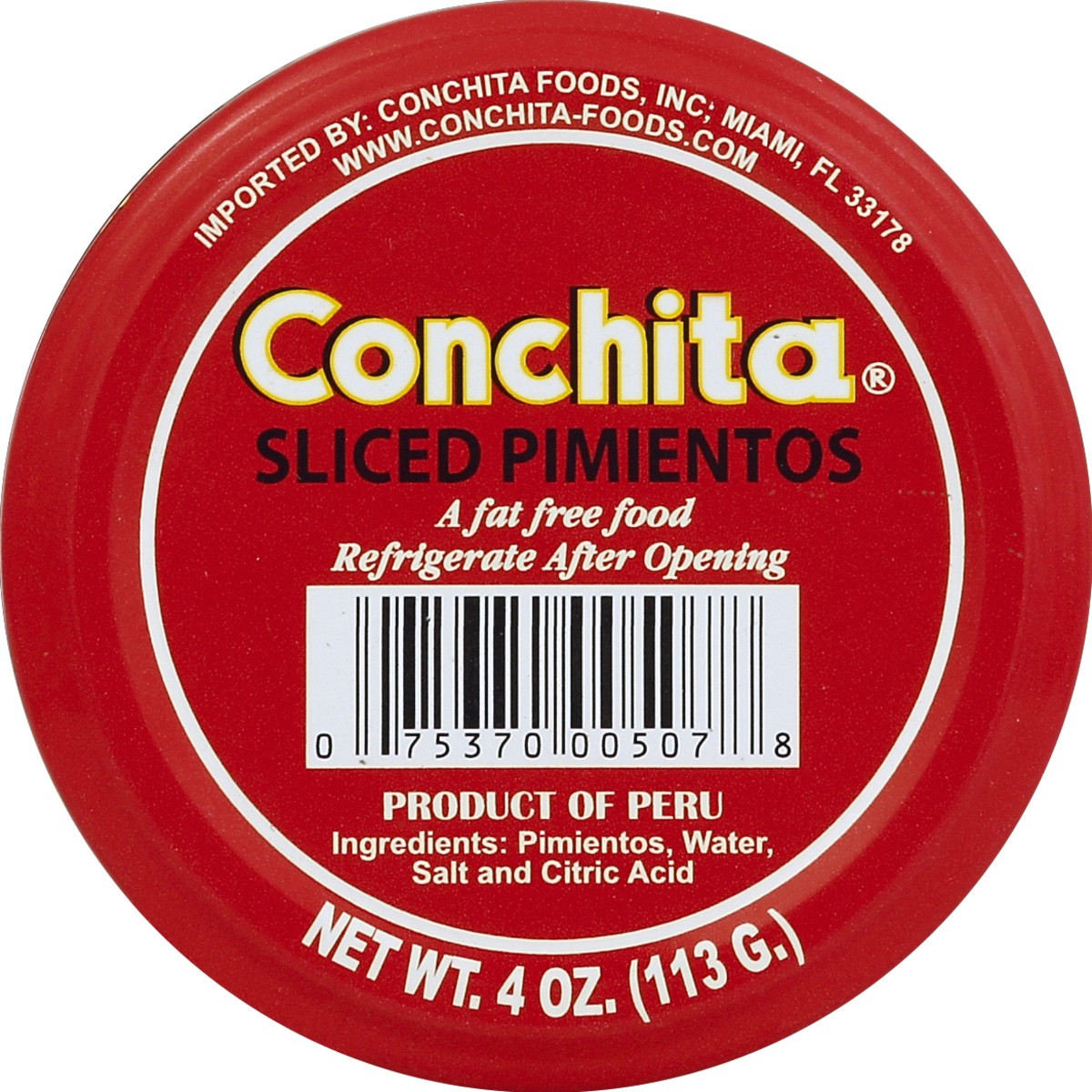 A fat free foods. www.Conchita-Foods.com. For Nutritional Information Write To: Conchita Foods, Inc. 10051 NW 99 Ave. No. 3, Miami, FL 33178. Product of Peru.