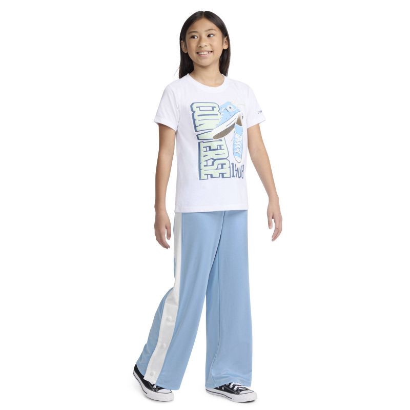 Step up your kid's game with these Converse pants, where classic comfort meets modern style. Made of comfortable pique fabric and designed with a wide-leg fit and snaps at the hem, they are the perfec…