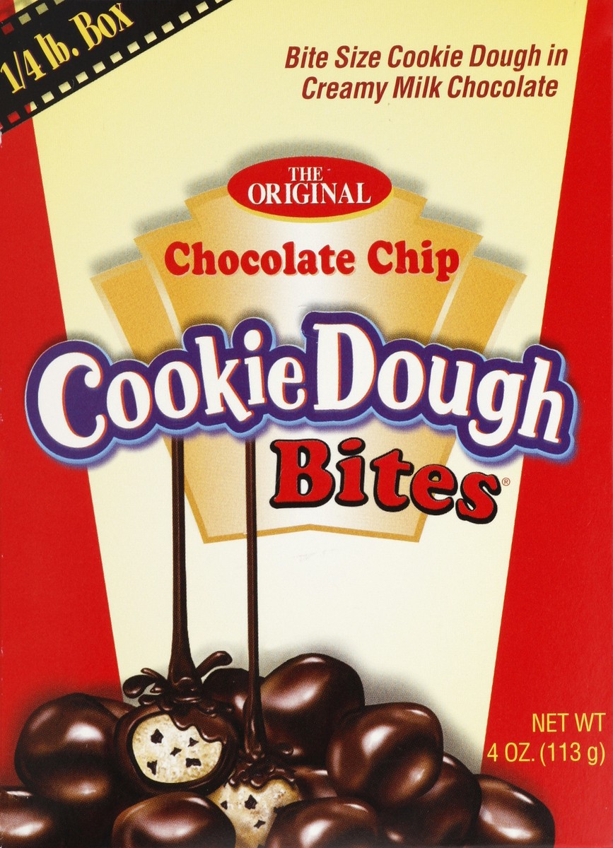 Bite size cookie dough in creamy milk chocolate. The original. 1/4 lb box. www.candyasap.com.