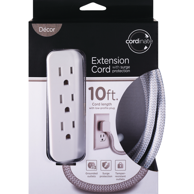 Coordinate Decor Cordinate Ext Cord 10ft 3 Outlet Gray/ White