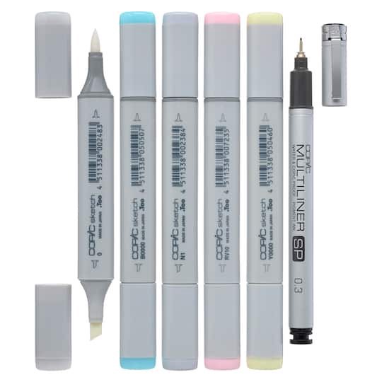 Find the Copic Blending Basics Sketch Marker Set at Michaels. Each marker has a flexible brush nib for blending and creating variable-width strokes, as well as a firm chisel nib for writing and sketch…