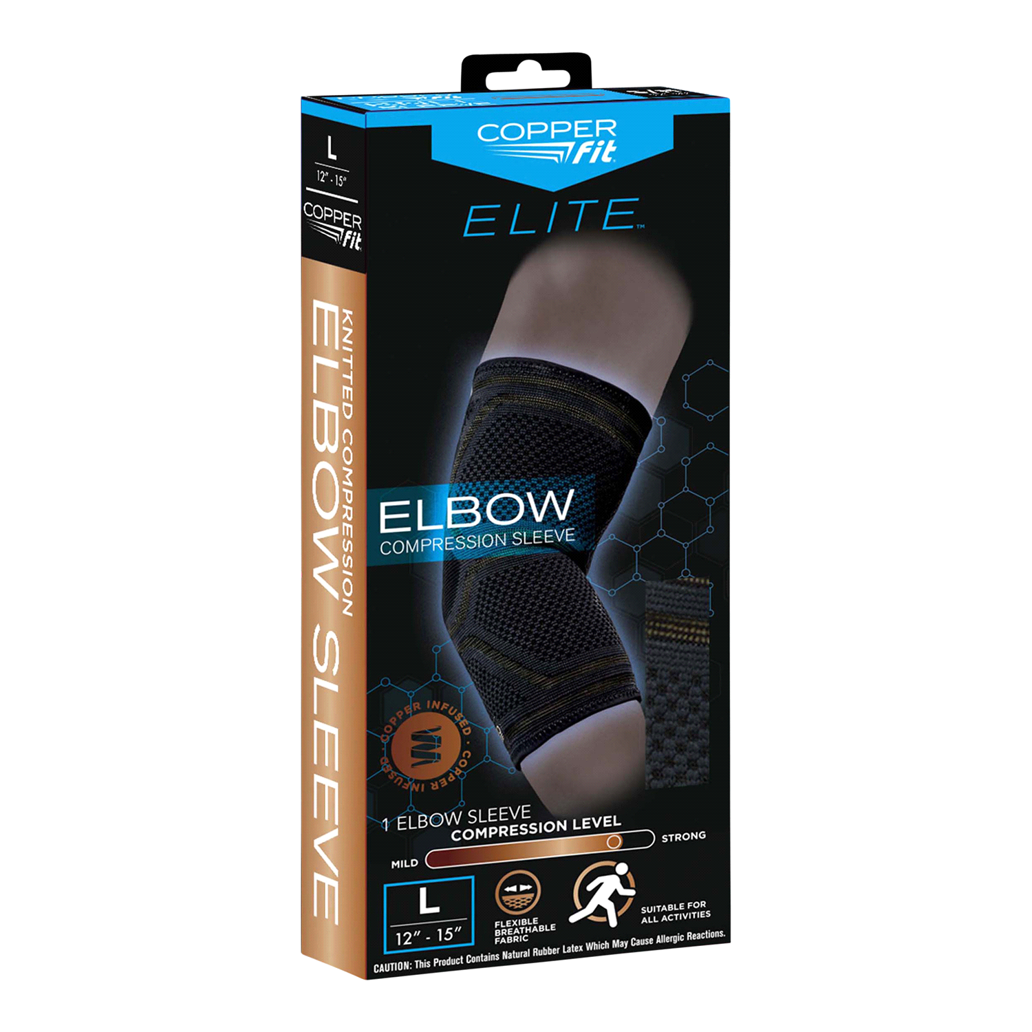 Inches Around Elbow: M: 10 inches - 12 inches; L 12 inches - 15 inches; XL: 15 inches - 17 inches. Copper infused. Flexible breathable fabric. Suitable for all activities. Compression helps reduce mus…