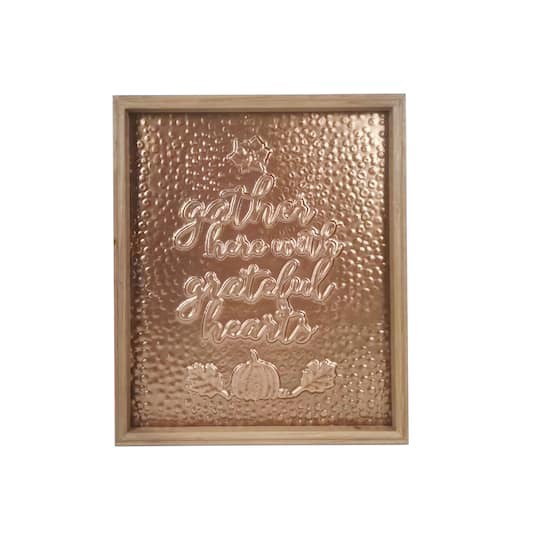 Purchase the Copper Gather Together Wall Sign by Ashland at Michaels. This framed sign features "Gather here with grateful hearts" on a textured copper colored metal background. Hang it on your dining…