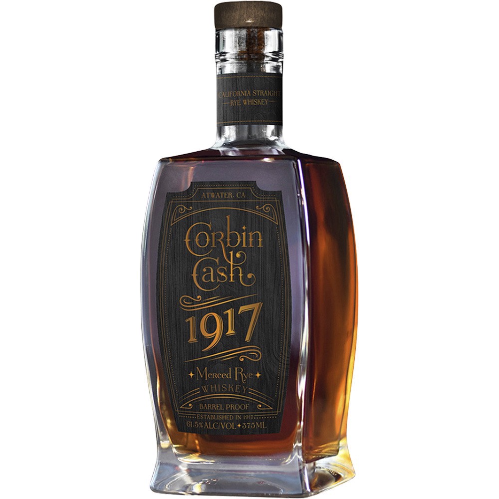 California- Corbin Cash 1917 rye whiskey is distilled, aged and bottled by the farmers that grow it. 100% Californian grown rye, straight from the barrel. A blend of their finest barrels, bottled at c…