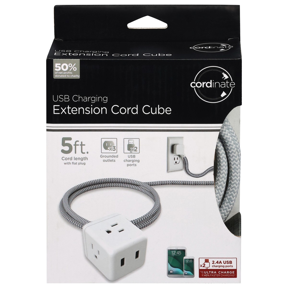 Power all of your favorite devices with the Cordinate USB Extension Cord Cube. With 3 outlets and 2 USBA ports, you can charge devices, power lamps and use your favorite kitchen gadgets at the same ti…