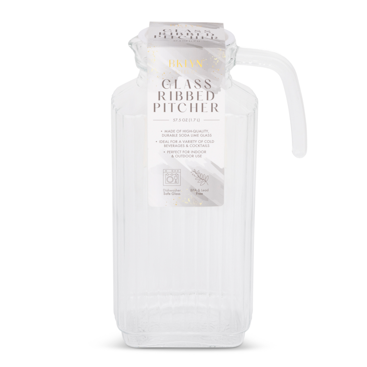Core Bamboo Bklyn Steel Ribbed Pitcher Glass Clear 57Oz