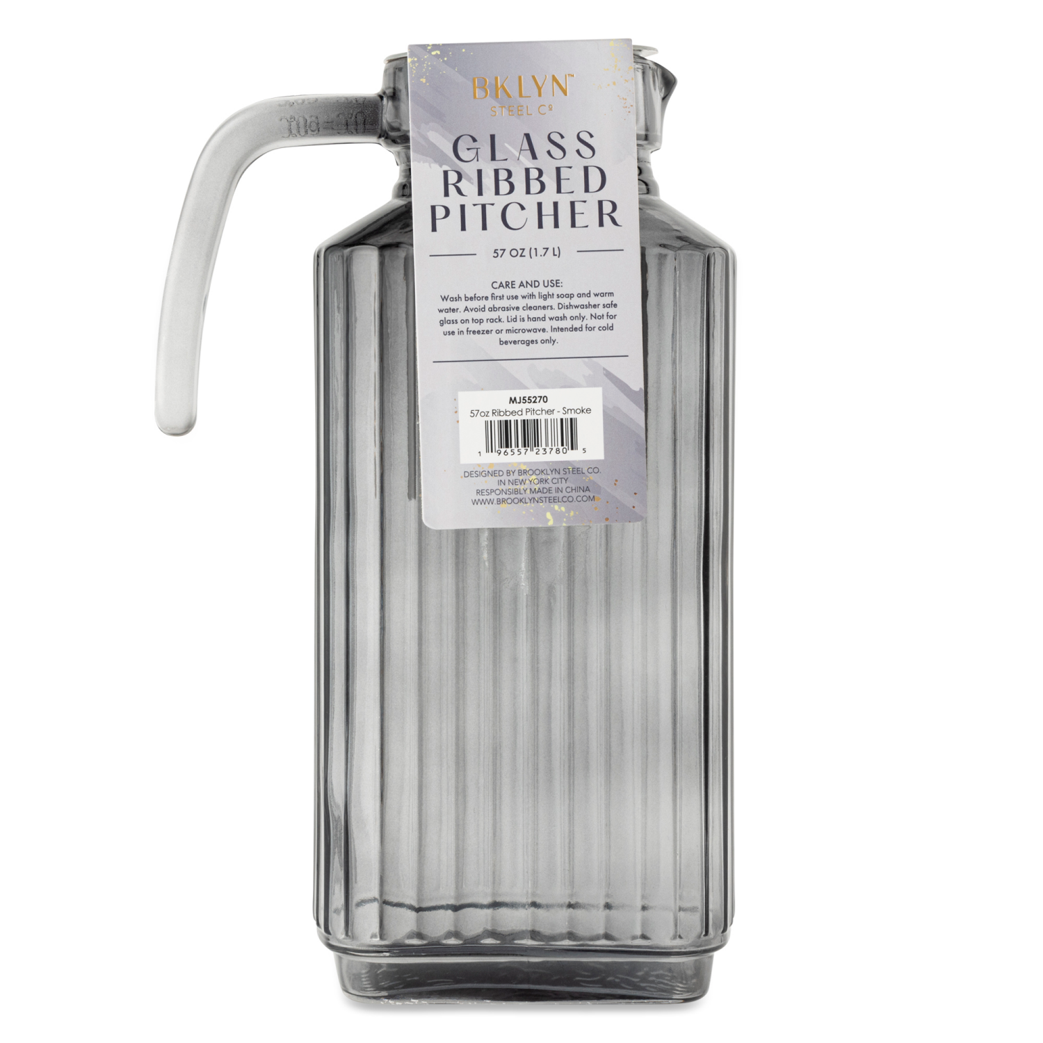 Core Bamboo Bklyn Steel Ribbed Pitcher Glass Smoke 57Oz