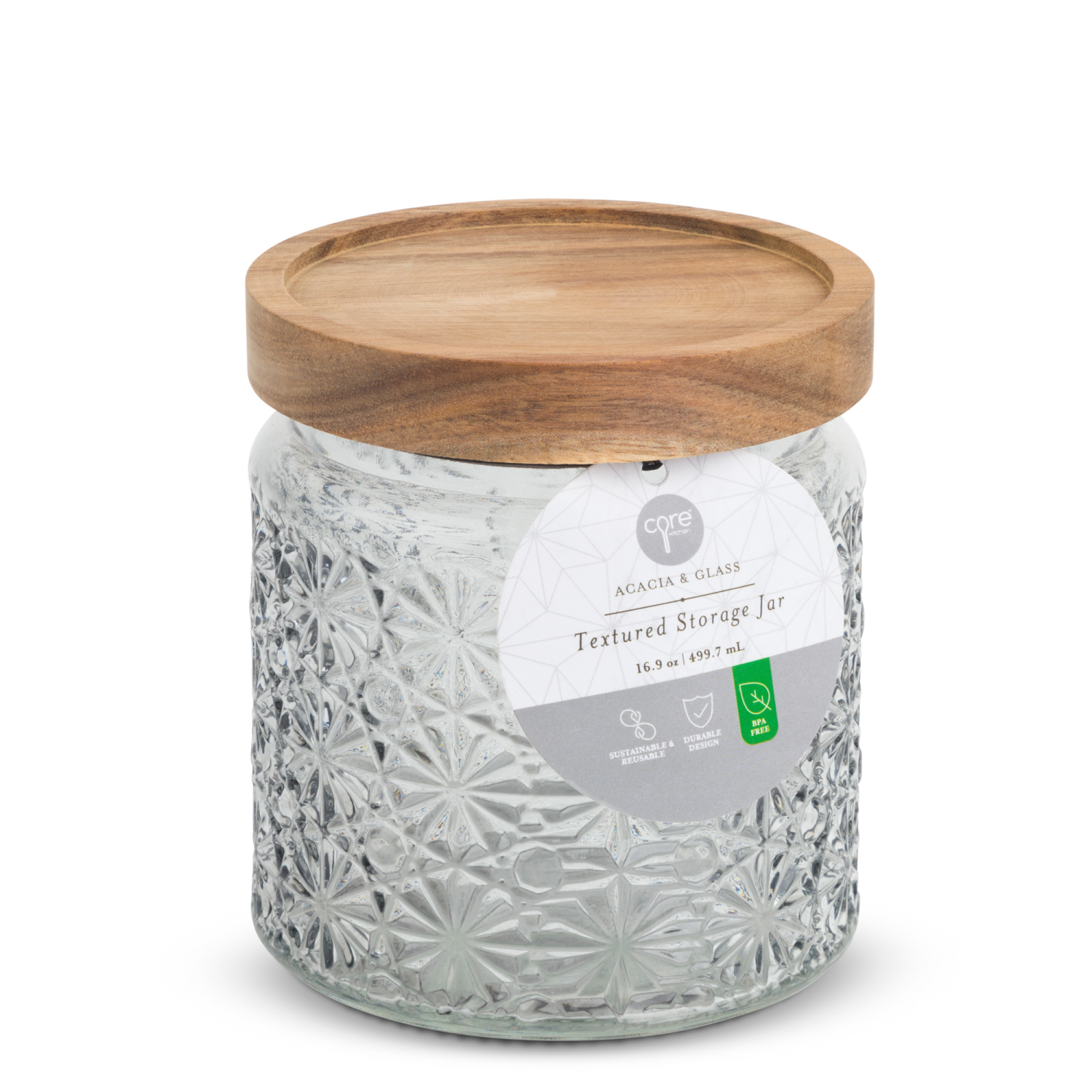 Core Bamboo Core Acacia Lid Canister Glass Geo Pewter 16.9Oz