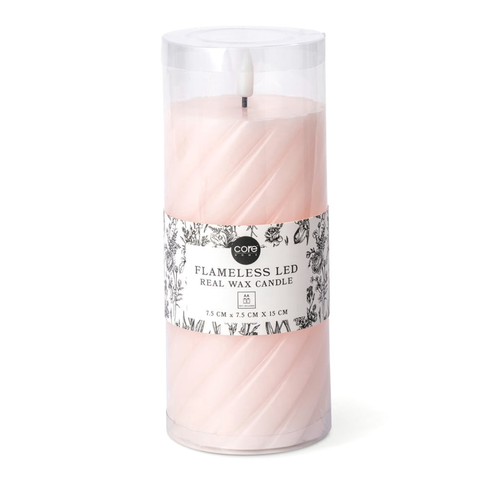 Core Home™ Large Flameless LED Swirl Pillar Wax Candle - Pink