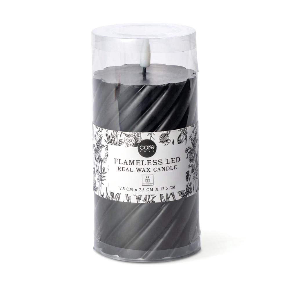 Core Home™ Medium Flameless LED Swirl Pillar Wax Candle - Black