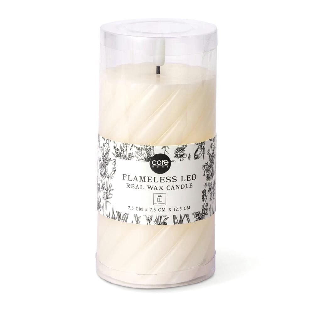 Core Home™ Medium Flameless LED Swirl Pillar Wax Candle - Cream