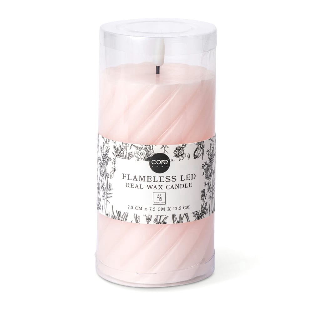 Core Home™ Medium Flameless LED Swirl Pillar Wax Candle - Pink