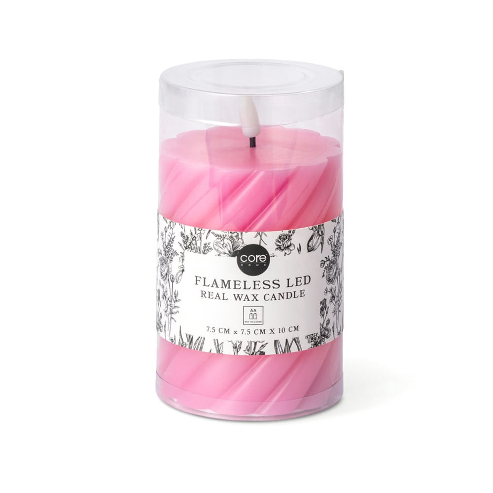 Core Home™ Small Flameless LED Swirl Pillar Wax Candle - Dark Pink