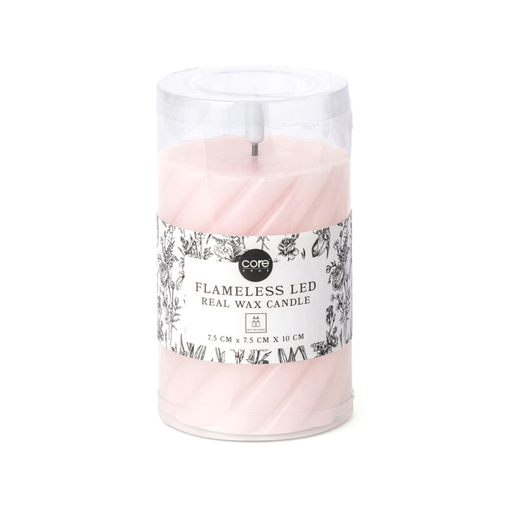 Core Home™ Small Flameless LED Swirl Pillar Wax Candle - Pink