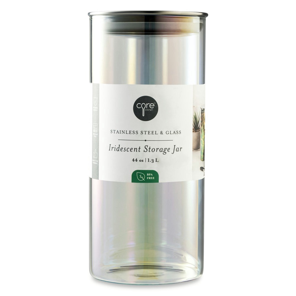 slide 2 of 2, Core Kitchen Stainless Steel & Glass Iridescent Storage Jar, 44 oz