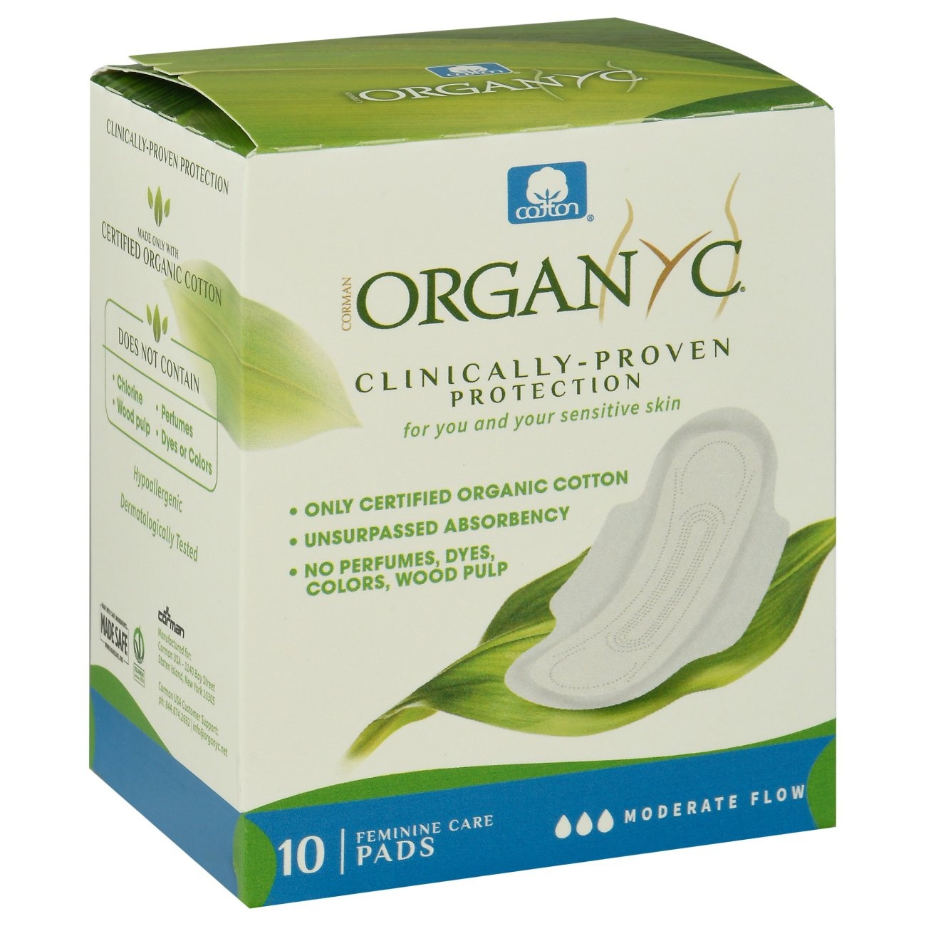 Organyc Moderate pads are made with 100% certified organic cotton inside and out - not just a little on the cover or inside, but 100%. These pads give you unsurpassed absorbency and leak protection an…