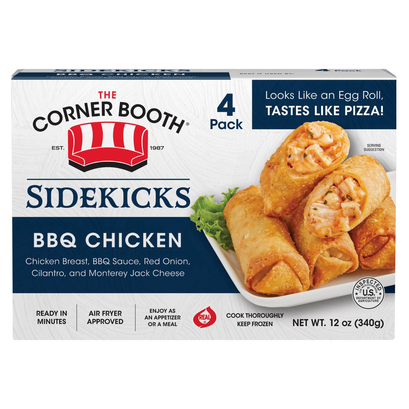 Introducing The Corner Booth Sidekicks. These innovative frozen appetizers look like egg rolls but burst with the savory, cheesy flavors of our signature pizza. Each roll is expertly crafted with our …