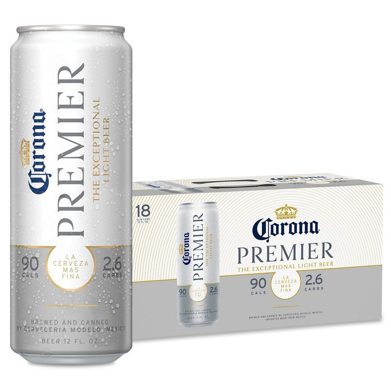 - 18 pack of 12 fl oz slim cans of Corona Premier Mexican Import Beer