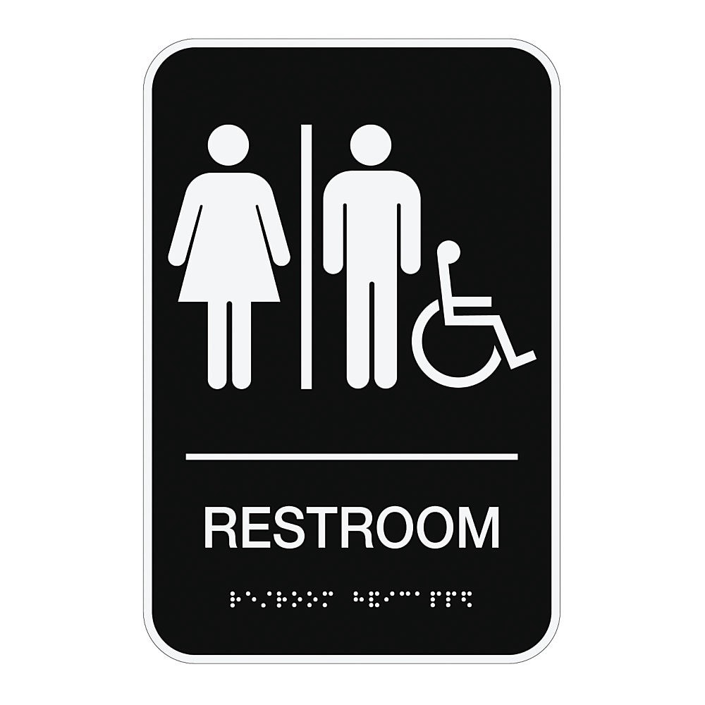 Let patrons know you have an ADA-accessible restroom with this sign Cosco ADA accessible restroom signs feature braille and a pictogram. Meets Americans with Disabilities Act (ADA) requirements. Signs…
