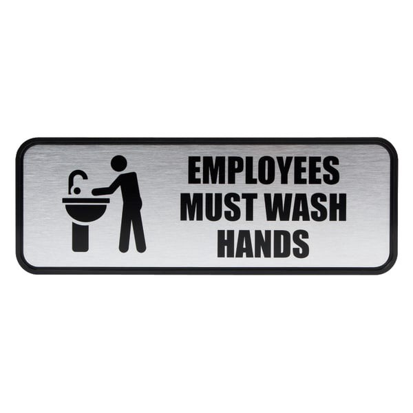 Cosco Brushed Metal "Employees Must Wash Hands" Sign, Silver