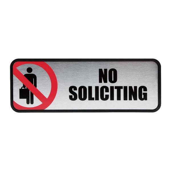 Made of sturdy materials, this sign will help you keep unwanted visitors from your property Keeps solicitors from entering your home or business. Brushed metal construction for strength with black vin…