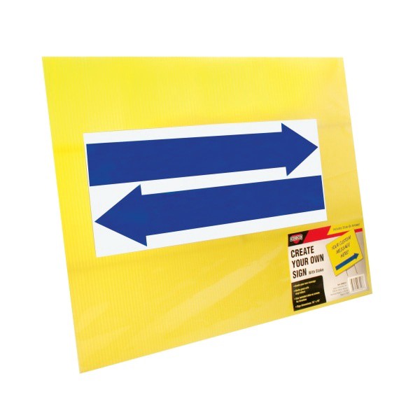 Cosco Large Blank Sign with Vinyl Blue Arrows And Stake, Yellow