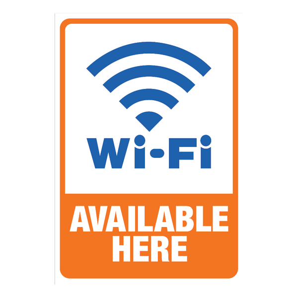 Put important messages on display Durable vinyl construction. Features blue Wi-Fi symbol with orange print that indicates Wi-Fi Is available Peel off adhesive backing for easy mounting Features blue a…