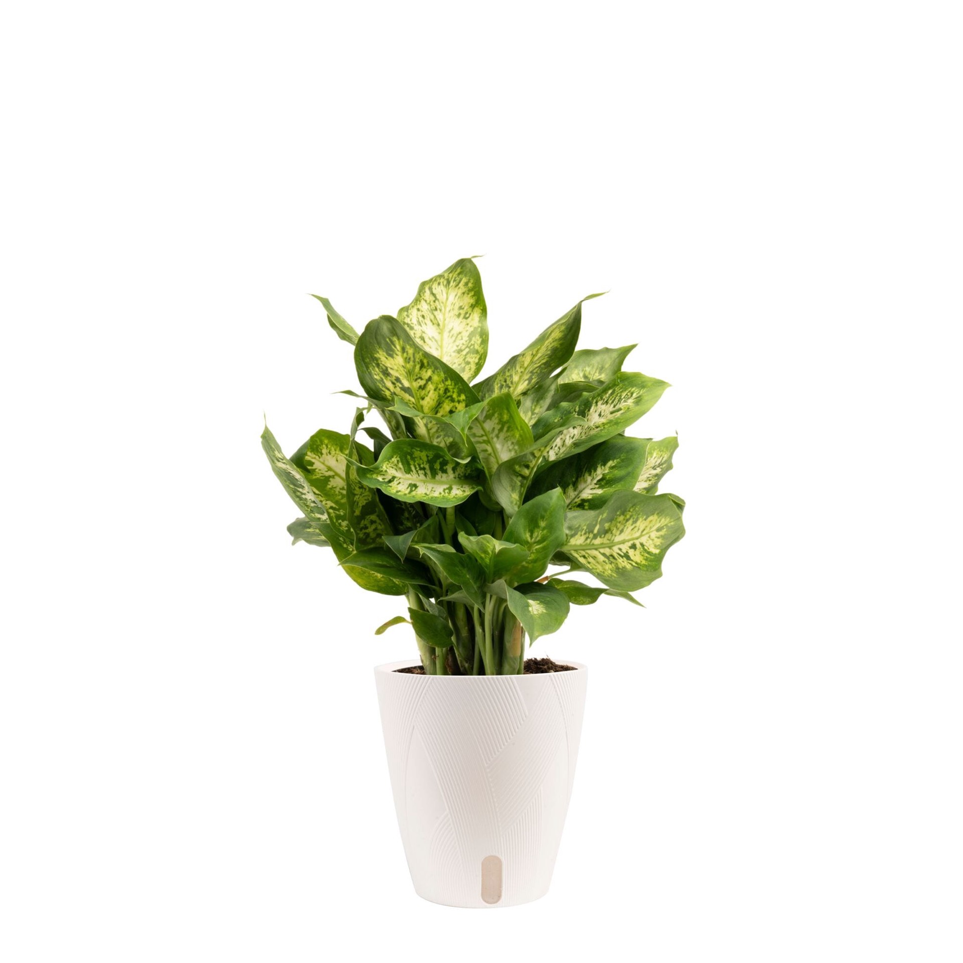 Dieffenbachia House plant in 1.4 Quart(s) Self-watering pot 1 -Pack. Tolerates medium light (2-3 hours of indirect light) per day, but loves high light (3-4 hours of indirect light) per day. Dieffenba…