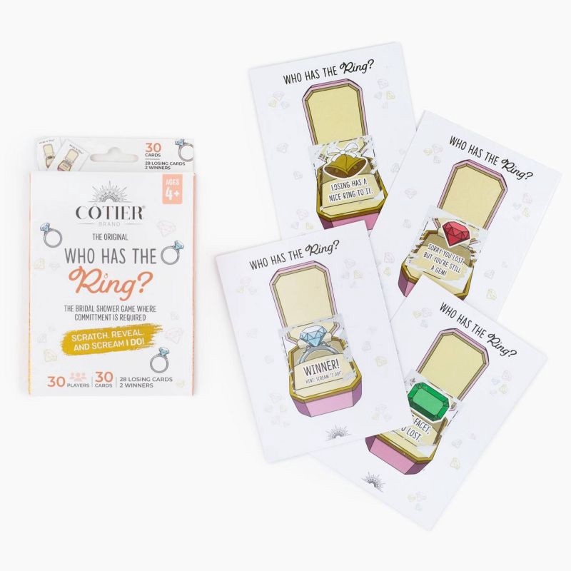 - A Huge Hit - Dreamed up by a stay at home mom with a sense of humor, our trademarked and copyrighted "Who Has The Ring?" bridal shower game is one-of-a-kind. Feel good knowing that every purchase made will support our small-family owned business located right here in Austin, Texas. If this game isn't a hit, we will refund you every penny back!
